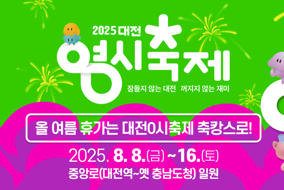올여름, 대전은 잠들지 않는다! 2025년 대전 0시 페스티벌이 8월 8일부터 8월 16일까지 9일간 대전의 심장부에서 펼쳐집니다.