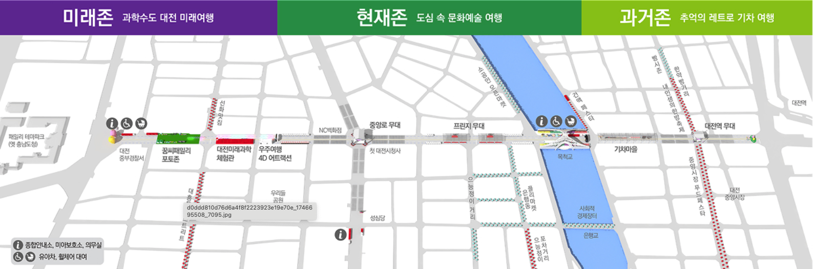 대전 0시 축제의 시간여행 퍼레이드는 대전역에서 옛 충남도청까지 이어지는 1km의 거리를 따라 진행됩니다.