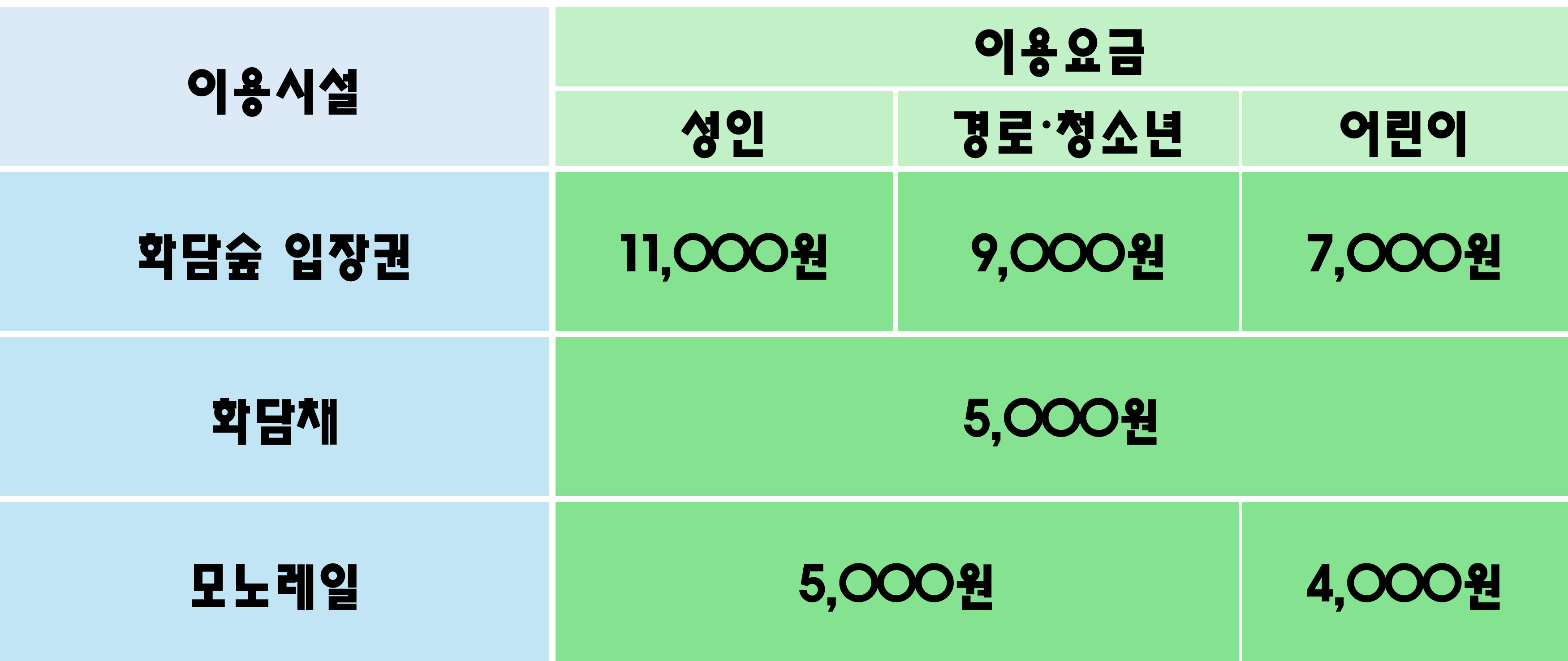 ② 현장 발권 불가(화담채와 모노레일은 현장상황에 따라 일부가능->'예매방법 및 안내'에 설명),