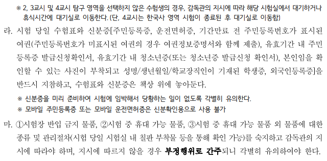 시험장 반입 금지 물품 및 휴대 가능 물품